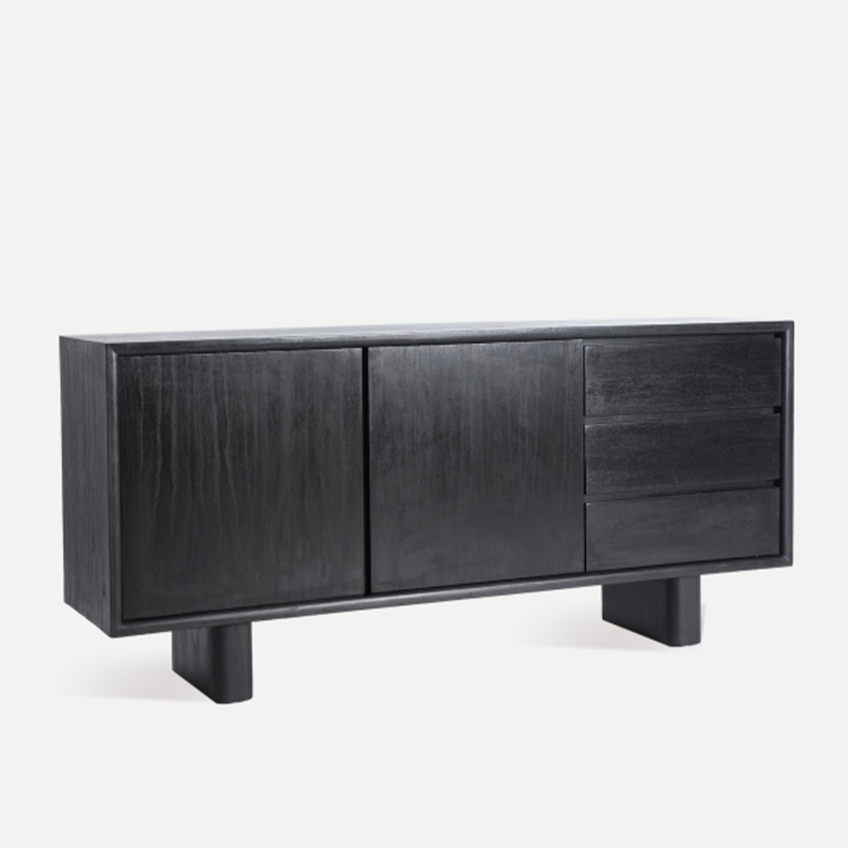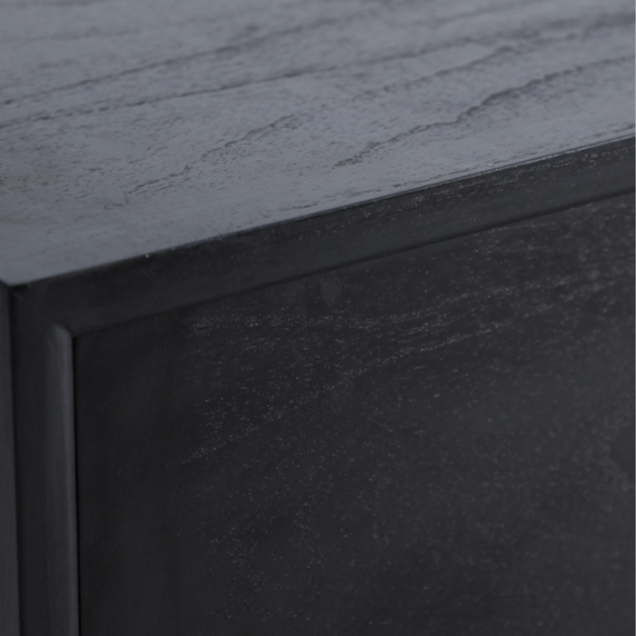 Aparador Demmin – diseño contemporáneo en madera mindi negra para interiores con carácter