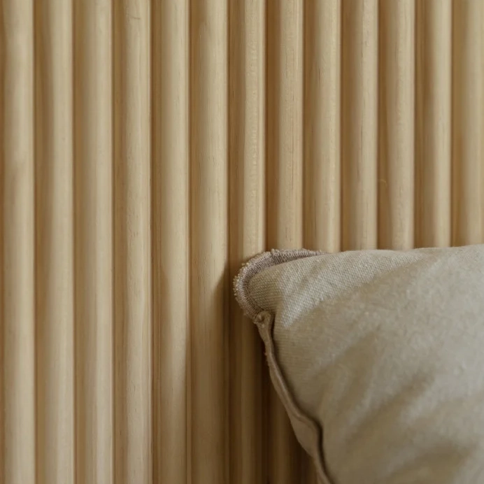 Fabricado en madera maciza de pino y abeto, este cabecero destaca por su diseño de líneas rectas y delicada decoración vertical, que encaja a la perfección en dormitorios rústicos, nórdicos o modernos con toques naturales. El tono claro resalta la veta de la madera, aportando una sensación de elegancia atemporal y creando una atmósfera envolvente y serena en tu habitación.