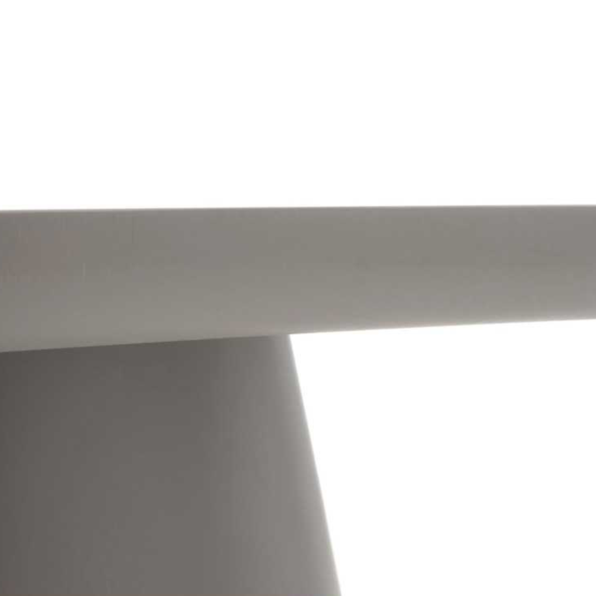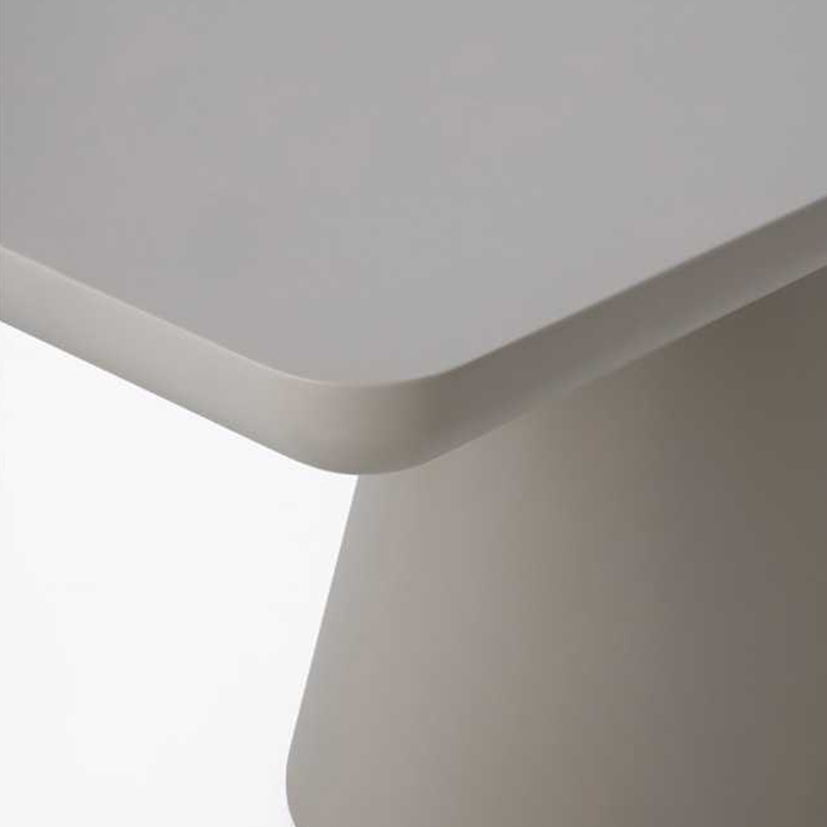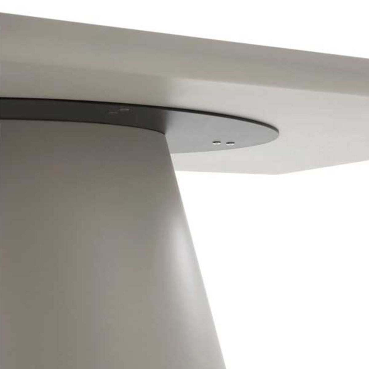 El acabado en topo claro mate aporta calidez y serenidad, alejándose del blanco puro para ofrecer un tono más natural y sofisticado. Su superficie lisa y su lacado epoxi la convierten en una mesa resistente a los roces, fácil de limpiar y con una textura uniforme de gran calidad.