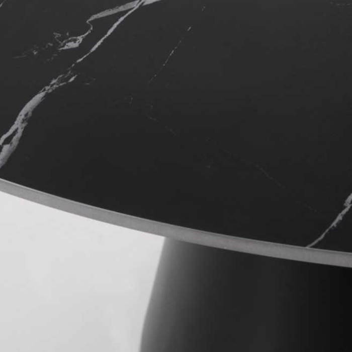 La mesa redonda 120 cm efecto mármol Marquina con base metálica negra es una pieza de diseño contemporáneo que combina elegancia, resistencia y personalidad. Su acabado en negro mate con vetas claras reproduce fielmente el mármol natural, aportando un toque sofisticado y exclusivo a cualquier comedor o zona de estar.