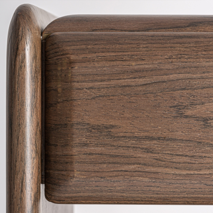 Fabricada en madera DM en color marrón, combinada con chapa de madera, esta mesita transmite calidez y solidez visual, manteniendo una imagen cuidada y atemporal. Es perfecta para dormitorios modernos, hoteles boutique o proyectos contract donde se valora el diseño discreto y la durabilidad.