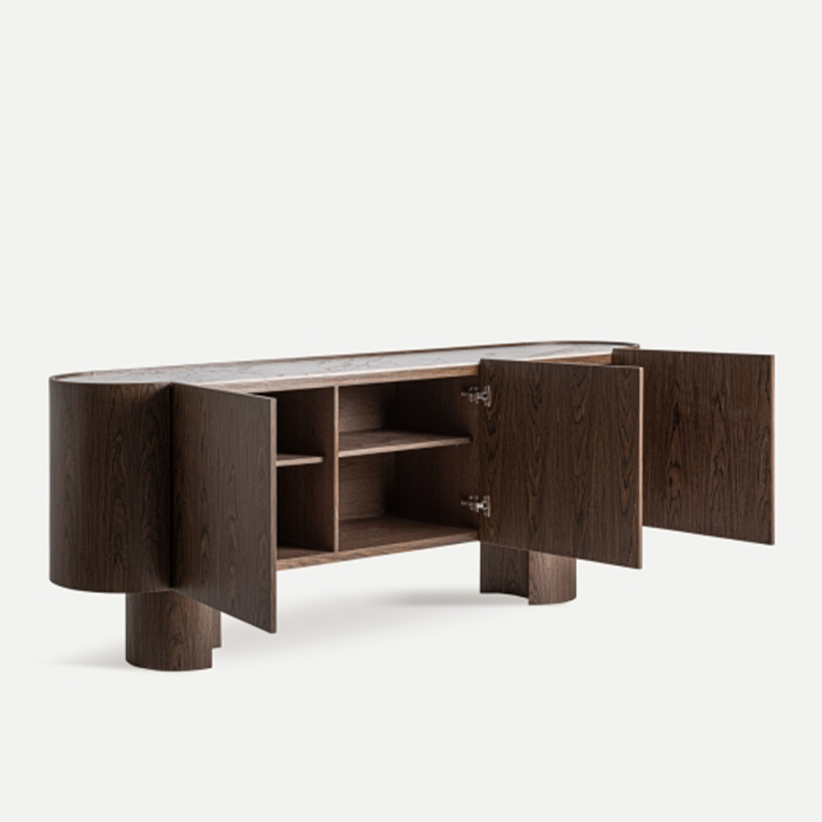 Con un peso de 101 kg, el Mueble TV Arko es una pieza robusta y extremadamente estable. Esta solidez lo hace perfecto tanto para hogares como para proyectos contract donde se requieren muebles fiables y de larga duración.