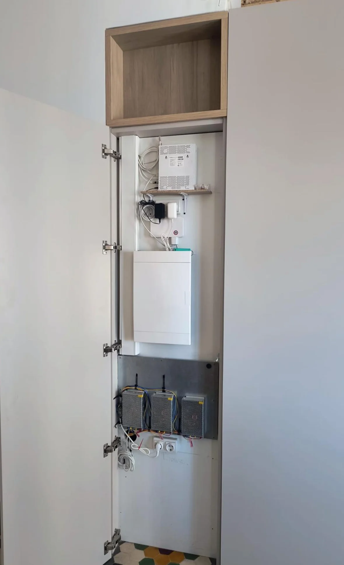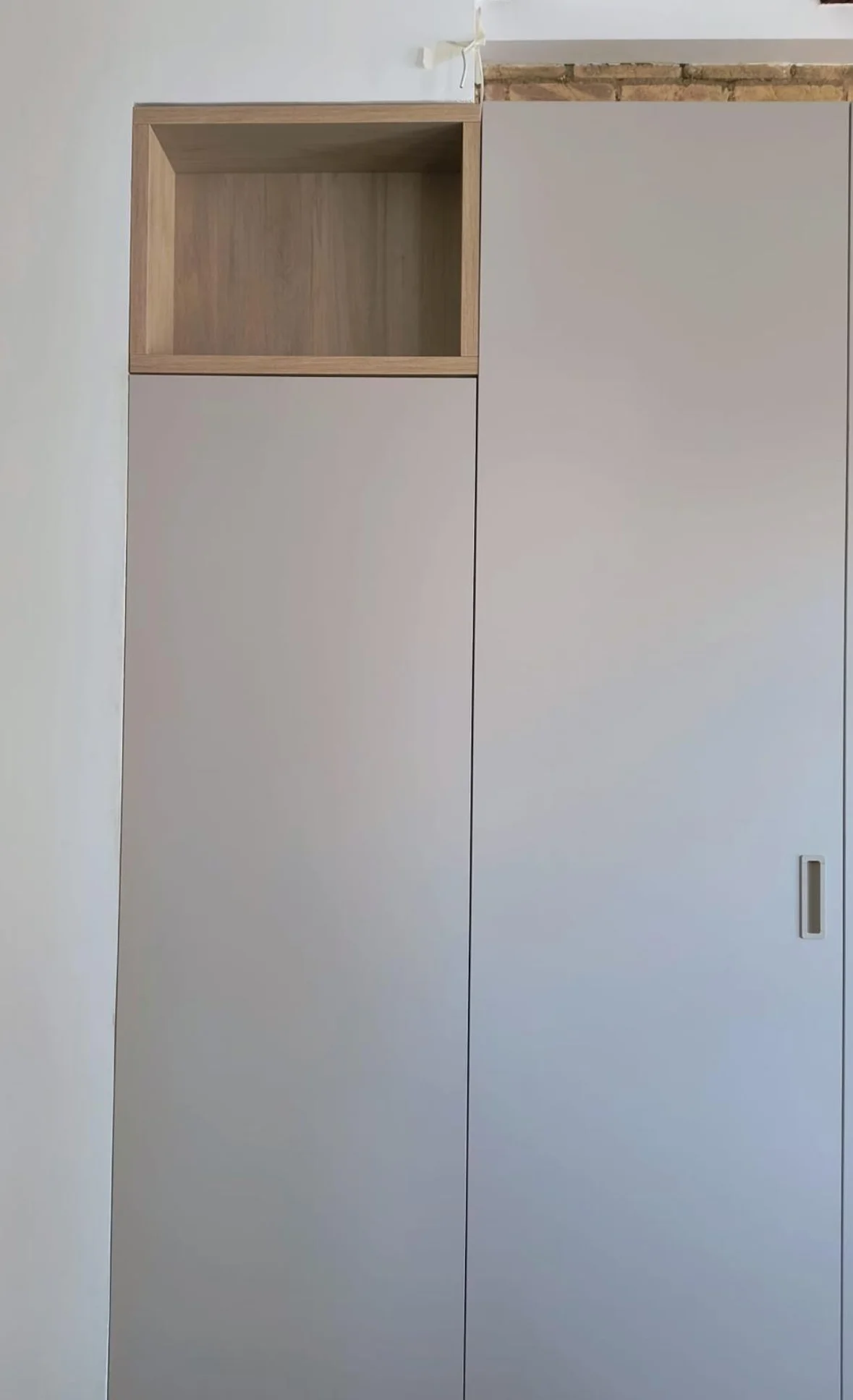 - Puerta técnica integrada que oculta cuadros eléctricos, manteniendo una estética limpia.