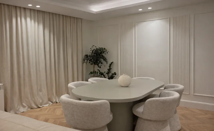 Este proyecto de interiorismo se concibe como un ejercicio de equilibrio entre elegancia, calma y funcionalidad. Un hogar diseñado para transmitir serenidad desde el primer vistazo, donde cada estancia se trabaja como parte de un conjunto coherente y fluido. La propuesta apuesta por una estética atemporal, basada en tonos suaves, iluminación cuidada y una atmósfera envolvente que acompaña la vida cotidiana sin imponerse.