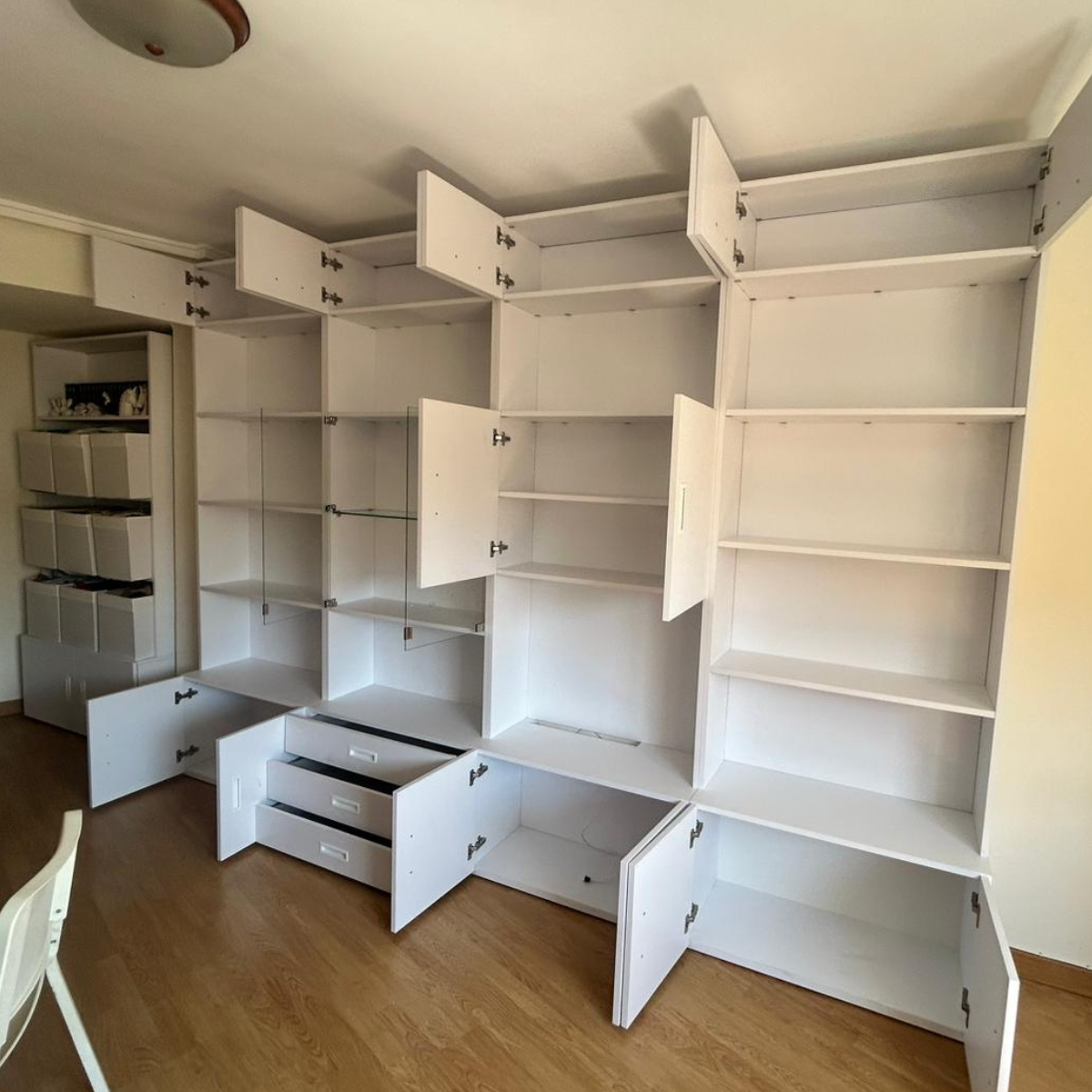 Esta librería a medida blanca de gran capacidad destaca por su diseño limpio y minimalista, ideal para comedores o salones modernos. Compuesto por cuatro cuerpos perfectamente integrados, ofrece una solución funcional y elegante para el almacenamiento y la organización del hogar.